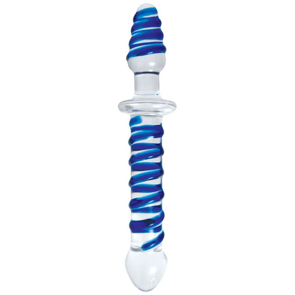 Adam & Eve Twisted Love Glass Dildo:Clear/Blue 24 cm (9.5โ) Double Ended Glass DongDiscover new levels of pleasure with this elegant, double-ended glass dildo. Let its long, subtly curved shaft reach deep for orgasmic G-Spot massage, or turn it around and feel the twisted sensation of the smooth plug sliding inside. Seductive raised blue swirls