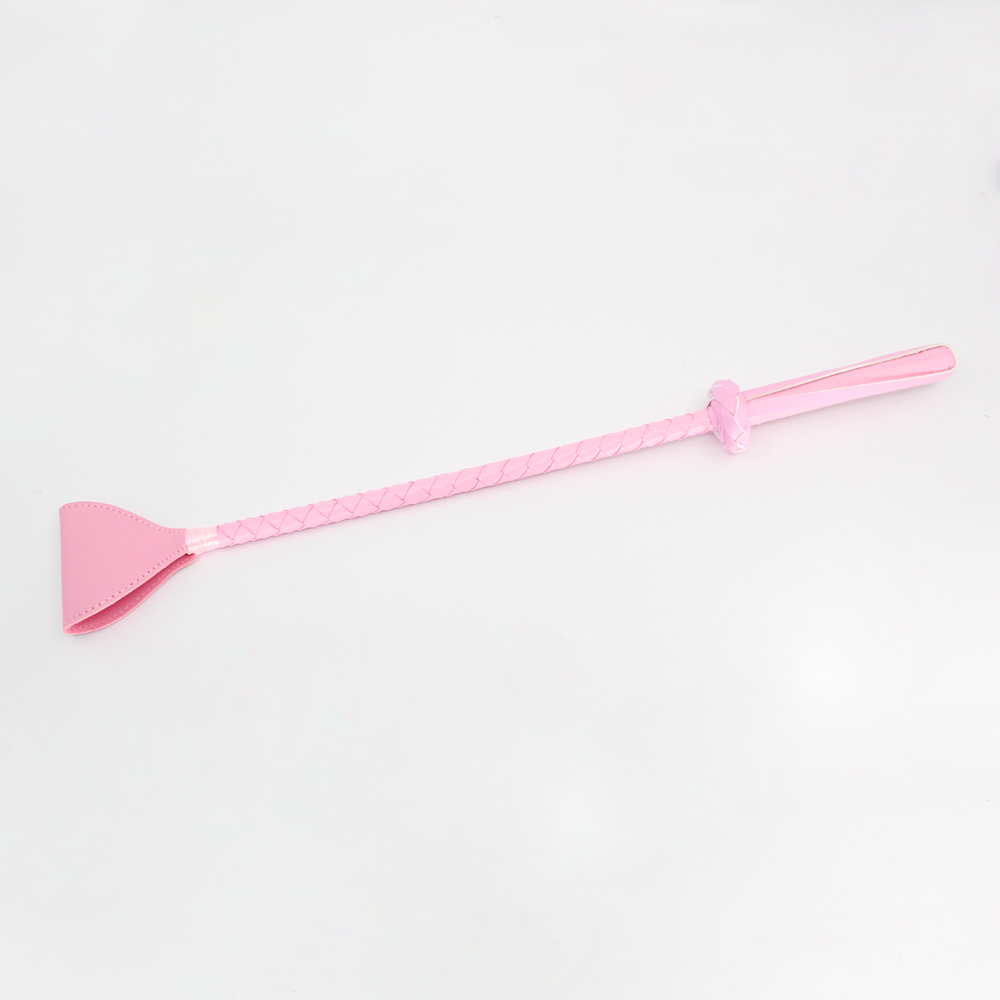 LIL Berlin Baby Riding Crop Pink: Leather look braided crop with wide tab end & wrist strap. Available in black, red, pink & purple. Made from vegan friendly faux leather. Made from soft faux leather Flexible core Measures 53cm from end to end 2cm diameter 14cm long wrist strap Tab measures approx. 8cm wide x 6.5cm long