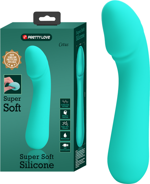 Pretty Love Super Soft Silicone Cetus Seafoam: We are proud to present to you our super soft silicone G-spot vibrator with amazing functionality and sensual contours. The multiple functions, velvety texture and curved design make for a smooth transition and a swift departure to a land of euphoria. This premium vibe is constructed of silicone that is soft and velvety smooth to the touch. This toy also flexes and moves with you, allowing its curved tip to reach your most erogenous zones. This amazing pleasure product is very versatile, so the potential is up to your own fantasies.