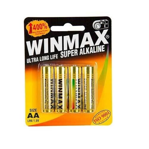 WINMAX 4pk AA Super Alkaline: AA Super Alkaline Winmax Battery – 4 Pack Tested Best Value Alkaline AA Battery in the market Offering up to 400% more power to your digital devices, Toys and Gadgets.